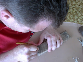 А ето и изработването и украсата със сребърна инкрустация на основата.